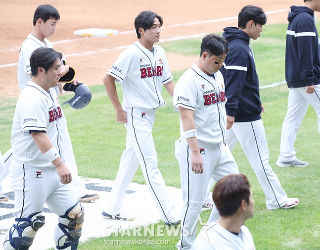 두산의 베테랑 의존증은 유격수만의 문제가 아니었다. 100경기 이상 치른 선수 중 OPS(출루율+장타율) 0.800 이상을 기록한 선수는 김재환(36), 양의지(37), 허경민(34), 양석환(33), 강승호(30)로 모두 30대 선수들이었다.