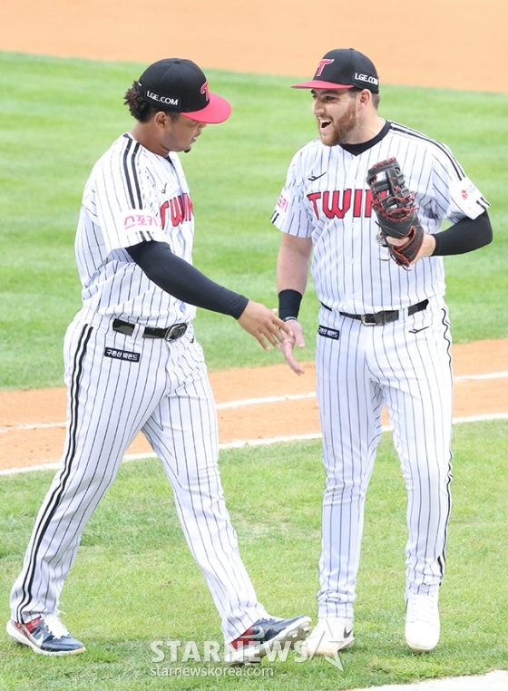 스포츠야구[포토] 에르난-스틴 '오늘은 이겼어'발행 : 2024.10.06 ・ 16:19잠실=김진경 대기자'2024 KBO 포스트시즌 준플레이오프 2차전' LG-KT전이 6일 서울 잠실야구장에서 열렸다.6회초 구원 등판한 LG 에르난데스가 실점 위기를 넘긴 후 오스틴의 축하를 받으며 더그아웃으로 향하고 있다.<저작권자 © 스타뉴스, 무단전재 및 재배포 금지>쿠에바스시구승요승리요정준플레이오프준PO추천 기사김진경 대기자기자홈좋아요 스포츠-야구의 인기 급상승 뉴스스포츠-야구의 최신 뉴스