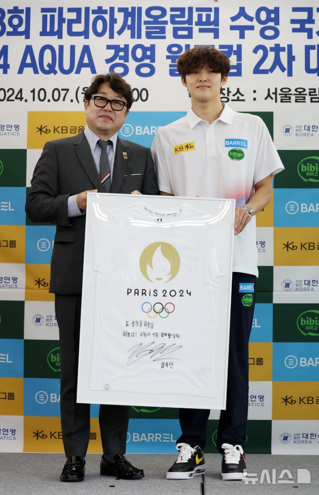 김우민도 깜짝 선물을 준비했다. 그동안 아낌없이 지원을 해준 대한수영연맹을 위해 정성스런 액자를 선물했다. 김우민은 "파리올림픽에서 대한수영연맹의 모든 분들이 많이 도와주셨다. 그런 감사한 마음을 담아 액자를 준비했다"고 전했다.