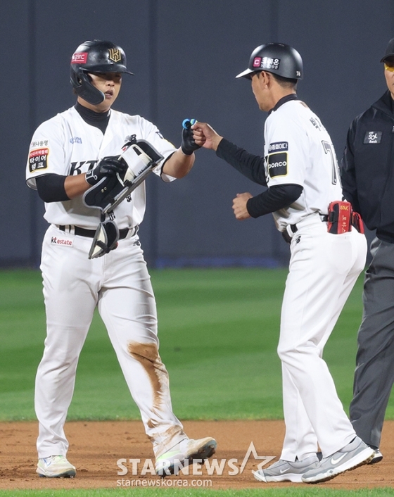 스포츠야구[포토] 강백호 '1회 2루타로 마수걸이'발행 : 2024.10.08 ・ 19:06수정 : 2024.10.08 ・ 19:31수원=김진경 대기자'2024 KBO 포스트시즌 준플레이오프 3차전' KT-LG전이 8일 수원 KT위즈파크에서 열렸다.KT 강백호가 1회말 1사에서 좌월 2루를 날리고 출루한 후 박기혁 코치의 환영을 받고 있다.<저작권자 © 스타뉴스, 무단전재 및 재배포 금지>준PO준플레이오프3차전준PO3차전최원태벤자민추천 기사김진경 대기자기자홈좋아요 스포츠-야구의 인기 급상승 뉴스스포츠-야구의 최신 뉴스
