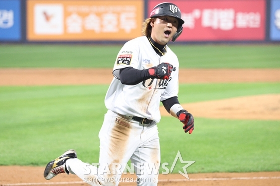 스포츠야구[포토] 김상수 '이게 웬 떡'발행 : 2024.10.08 ・ 19:19수정 : 2024.10.08 ・ 19:30수원=김진경 대기자'2024 KBO 포스트시즌 준플레이오프 3차전' KT-LG전이 8일 수원 KT위즈파크에서 열렸다.KT 2회말 1사 1루에서 1루주자 김상수기 배정대의 안타와 상대 실책에 힘입어 동점 득점을 한 후 환호하고 있다.<저작권자 © 스타뉴스, 무단전재 및 재배포 금지>준PO준플레이오프3차전준PO3차전최원태벤자민추천 기사김진경 대기자기자홈좋아요 스포츠-야구의 인기 급상승 뉴스스포츠-야구의 최신 뉴스