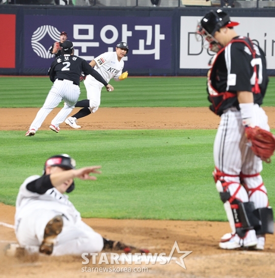 스포츠야구[포토] 장성우 역전에 황재균 협살 바터발행 : 2024.10.08 ・ 20:08수원=김진경 대기자'2024 KBO 포스트시즌 준플레이오프 3차전' KT-LG전이 8일 수원 KT위즈파크에서 열렸다.KT 3회말 2사 1,2루에서 김상수의 좌전 안타 3루주자 장성우가 역전 득점에 성공했으니 1루주자 황재균은 협살에 걸려 태그아웃되고 있다.<저작권자 © 스타뉴스, 무단전재 및 재배포 금지>준PO준플레이오프3차전준PO3차전최원태벤자민추천 기사김진경 대기자기자홈좋아요 스포츠-야구의 인기 급상승 뉴스스포츠-야구의 최신 뉴스