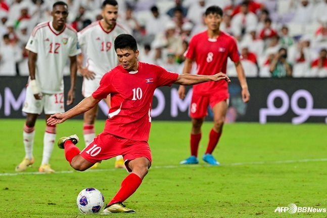 북한 축구가 파울루 벤투 감독이 이끄는 아랍에미리트연합(UAE)을 잡을 뻔했다. 한때 이탈리아 세리에A에서 활약했던 한광성(4.25선수단)의 페널티킥 실축이 뼈아팠다.