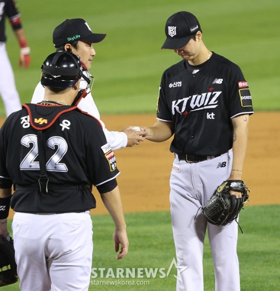 이후 KT는 손주영의 위력투는 계속됐다. 8회에도 2개의 삼진을 솎아내는 등 삼자범퇴로 막아내며 2이닝 1볼넷 4탈삼진 무실점을 기록했다. 9회 등판한 엘리에이저 에르난데스는 장성우를 볼넷으로 내보냈으나, 황재균에게 병살타를 끌어내며 경기를 끝냈다.