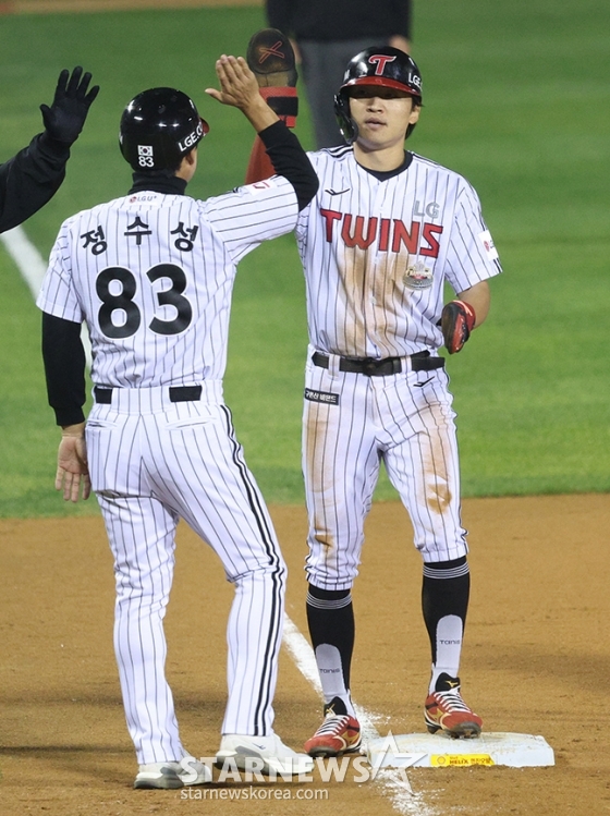 스포츠야구[포토] 박해민 '1점은 발로 충분'발행 : 2024.10.11 ・ 20:53잠실=김진경 대기자'2024 KBO 포스트시즌 준플레이오프 5차전' LG-,kt전이11일 서울 잠실야구장에서 열렸다.LG 7회말 1사 1루에서 1루주자 박해민이 2루 도루 성공과 상대 실책에 힘입어 3루까지 진루한 후 정수성 코치의 환영을 받고 있다.<저작권자 © 스타뉴스, 무단전재 및 재배포 금지>준PO준플레이오프홍창기강백호신민재염경엽추천 기사김진경 대기자기자홈좋아요 스포츠-야구의 인기 급상승 뉴스스포츠-야구의 최신 뉴스