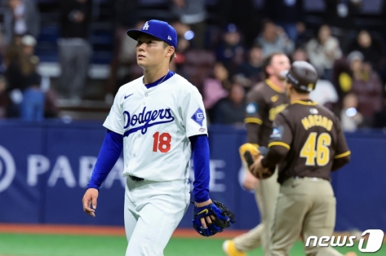 그 경기에서 야마모토는 체면을 구겼다. 샌디에이고와 서울시리즈 2차전에서 선발 등판한 그는 1이닝 4피안타 2사사구(1볼넷 1몸에 맞는 볼) 2탈삼진 5실점으로 강판당했다. 총 투구 수 43구 중 스트라이크는 23구에 불과했고 마치 타이밍을 잰 듯한 샌디에이고 타자들의 방망이에 야마모토는 속수무책이었다.