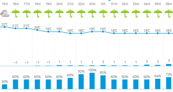 이제 시선은 2차전으로 쏠린다. 다만 대구 날씨가 심상치 않다. 경기가 열리는 저녁 시간대부터 비 예보가 내려져 있기 때문이다. 기상청에 따르면 삼성라이온즈파크가 위치한 대구 수성구 연호동에는 오후 4시부터 비 예보가 있다. 시간당 1~3mm의 비가 내일(15일) 오전 7시까지 계속해서 내린다고 나와 있다. 예보대로 비가 계속해서 내린다면 정상 경기 진행이 어려울 것으로 보인다. 만약 우천 취소되면 플레이오프 일정이 하루씩 순연되면서, 2차전은 15일 오후 6시 30분에 열린다.