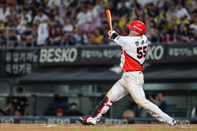 타선에서는 김도영이 지난 상무전에 이어 이날도 홈런포를 터트리면서 쾌조의 컨디션을 자랑했다. KIA가 1-2로 지고 있는 6회말 진승현의 시속 142㎞ 직구를 통타해 좌측 담장을 크게 넘겼다. 무려 시속 178.9㎞의 타구속도로 비거리가 131.9m까지 나온 대형 홈런이었다. 김도영은 이날 홈런 포함 KIA 타자 중 유일하게 2안타를 기록했다.