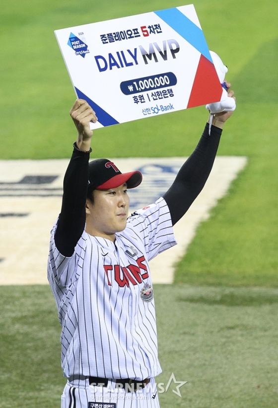 LG는 선발 투수도 디트릭 엔스에서 손주영으로 교체했다. 손주영은 지난 8일 KT 위즈와 준PO 3차전 5⅓이닝 무실점, 11일 5차전 2이닝 무실점 호투를 펼쳤다. 올 시즌 9승 10패 ERA 3.79로 LG의 로테이션 한 축을 맡았던 그는 가을야구에서 진정한 '빅게임 피처'의 면모를 보였다.