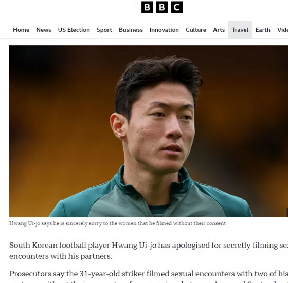 영국 매체 'BBC'는 16일(한국시간) "한국 축구 선수 황의조가 성적 접촉을 비밀리에 촬영한 것을 사과했다"며 "검찰은 황의조가 2022년 6월과 9월 사이 네 차례에 걸쳐 두 명과 성적 접촉을 동의 없이 촬영했다고 밝혔다"고 보도했다.