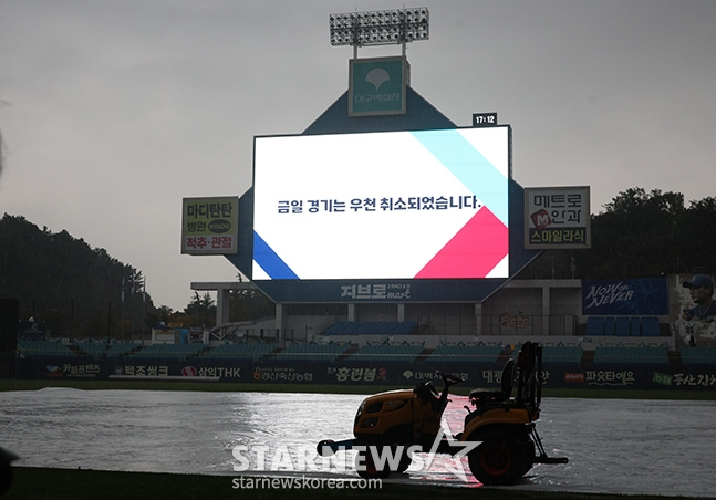 이미 이번 플레이오프에서 비로 인해 1경기가 우천 취소된 바 있다. 바로 14일 삼성라이온즈파크에서 펼쳐질 예정이었던 플레이오프 2차전이었다. 당시 오후부터 내린 비로 인해 결국 경기 약 1시간 30여분을 앞두고 우천 취소됐다. 결국 이 경기는 하루 뒤인 15일에 치러졌다. 이번에도 비가 내려서 18일 경기가 취소되면 다음 날인 19일에 진행된다.