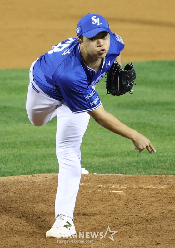 김윤수(25·삼성 라이온즈)는 17일 서울 잠실구장에서 열린 열리는 LG 트윈스와 2024 신한 SOL뱅크 KBO 포스트시즌 플레이오프(PO·5전 3선승제) 3차전 팀이 0-1로 뒤진 5회말 2사 1,2루에 구원 등판해 오스틴을 우익수 뜬공으로 돌려세웠다.