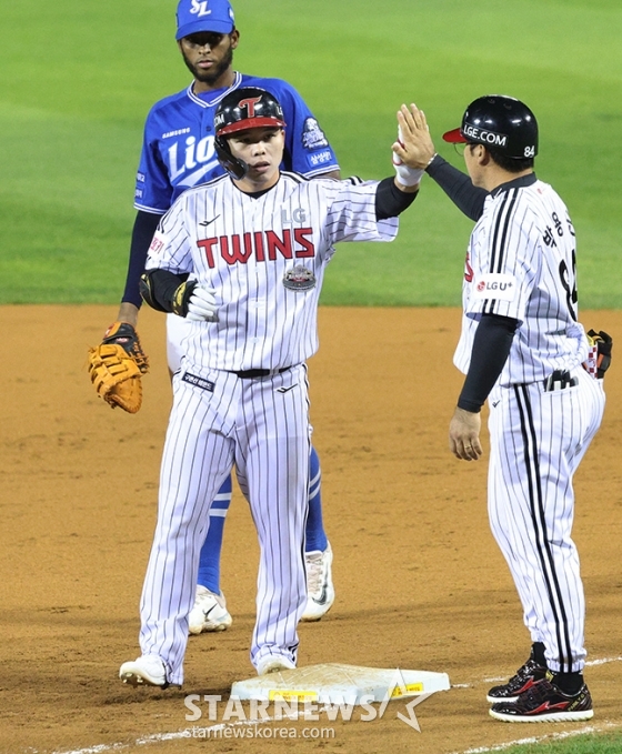 스포츠야구[포토] 문성주 '깨어났다 성주'발행 : 2024.10.17 ・ 21:16잠실=김진경 대기자'2024 KBO 포스트시즌 플레이오프 3차전' LG-삼성전이 17일 서울 잠실야구장에서 열렸다.LG 문성주가 7회초 2사에서 중전 언타를 날리고 출루한 후 박용근 코치의 환영을 받고 있다.<저작권자 © 스타뉴스, 무단전재 및 재배포 금지>플레이오프3차전POLG삼성구자욱추천 기사김진경 대기자기자홈좋아요 스포츠-야구의 인기 급상승 뉴스스포츠-야구의 최신 뉴스