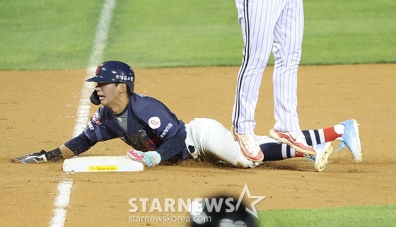 첫 타석에서 안타로 나간 장두성은 초구를 지켜본 뒤 2구째 곧바로 2루 베이스를 훔쳤다. 처음 보는 투수인데 어떻게 도루 타이밍을 파악할 수 있었을까. 그는 초구를 봤는데 퀵 모션(슬라이드 스텝)을 보고 '아, 그냥 충분히 갈 수 있겠다. 여유 있겠다' 싶어서 2루로 갔다. 2루에서도 동작이 보여서 과감하게 스타트를 끊었다"고 말했다.