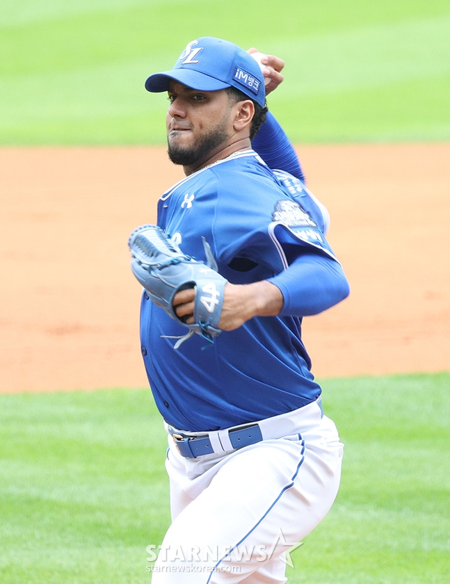 삼성 레예스도 못지 않았다. 경기 초반엔 포수 강민호의 도움이 있었다. 1회 홍창기에게 몸에 맞는 공을 내주고도 강민호가 2루 도루를 저지했고 2회에도 1사에서 안타를 치고 2루를 훔치려는 오지환을 잡아내며 위기를 넘겼다. 이후 철저히 맞춰잡는 피칭으로 재미를 봤다. 2가지 종류의 속구와 체인지업, 커터와 커브 등으로 LG 타선을 제압했다.