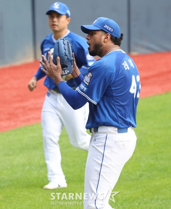 스포츠야구[포토] 레예스 '야수에게 보내는 갈채'발행 : 2024.10.19 ・ 16:00잠실=김진경 대기자'2024 KBO 포스트시즌 플레이오프 4차전' LG-삼성전이 19일 서울 잠실야구장에서 열렸다.삼성 선발 레예스가 6회말 1사 1,2루에서 LG 신민재를 병살로 잡은 후 포효하고 있다.<저작권자 © 스타뉴스, 무단전재 및 재배포 금지>플레이오프POLG삼성구자욱염경엽추천 기사김진경 대기자기자홈좋아요 스포츠-야구의 인기 급상승 뉴스스포츠-야구의 최신 뉴스