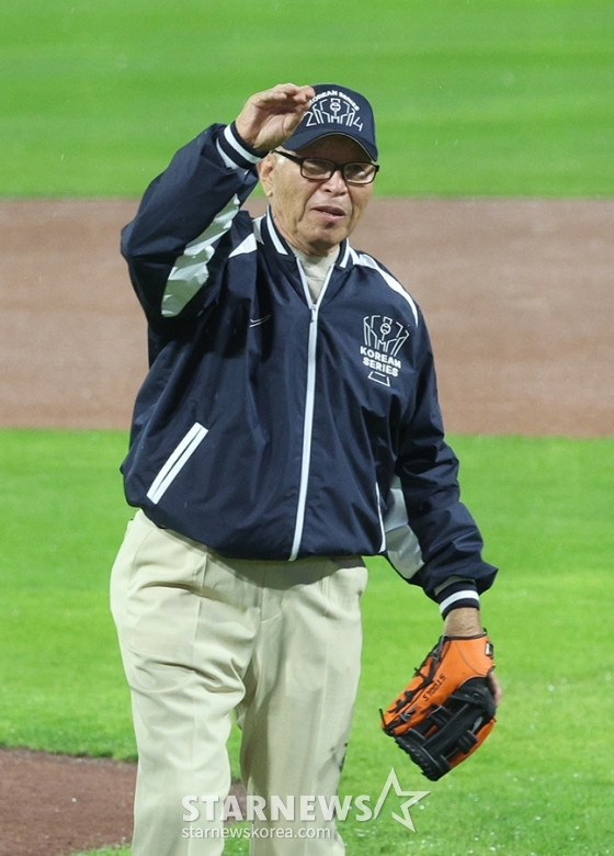 스포츠야구[포토] 김응용 '레전드의 시구'발행 : 2024.10.21 ・ 19:39광주=김진경 대기자'2024 KBO 포스트시즌 한국시리즈 1차전' KIA-삼성전이 21일 광주-기아챔피언스필드에서 열렸다.김용응 전 감독을 비롯해 김성한, 김종모 등 해태 왕조를 이뤘던 멤버들이 KIA 승리기원 시구, 시타, 시포를 맡아 팬들의 큰 박수를 받았다.<저작권자 © 스타뉴스, 무단전재 및 재배포 금지>KBO한국시리즈코리안시리즈코시이범호김도영추천 기사김진경 대기자기자홈좋아요 스포츠-야구의 인기 급상승 뉴스스포츠-야구의 최신 뉴스
