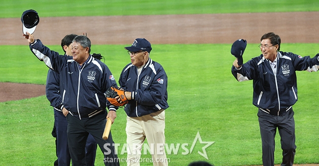 스포츠야구[포토] 빛고을 빛낸 해태 레전드 3인방발행 : 2024.10.21 ・ 19:42광주=김진경 대기자'2024 KBO 포스트시즌 한국시리즈 1차전' KIA-삼성전이 21일 광주-기아챔피언스필드에서 열렸다.김용응 전 감독을 비롯해 김성한, 김종모 등 해태 왕조를 이뤘던 멤버들이 KIA 승리기원 시구, 시타, 시포를 맡아 팬들의 큰 박수를 받았다.<저작권자 © 스타뉴스, 무단전재 및 재배포 금지>KBO한국시리즈코리안시리즈코시이범호김도영추천 기사김진경 대기자기자홈좋아요 스포츠-야구의 인기 급상승 뉴스스포츠-야구의 최신 뉴스