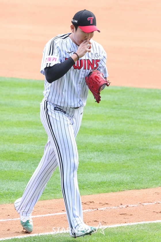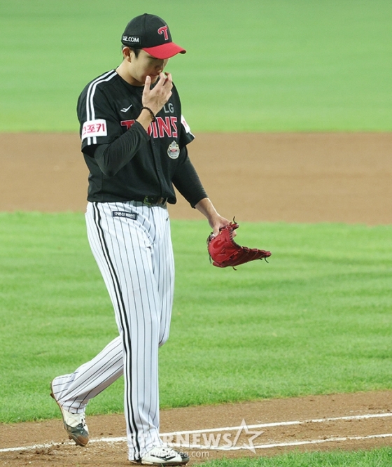 하지만 다음이 문제였다. 손주영이 벤치 쪽에 신호를 보낸 것. 부상이었다. 잠시 경기가 중단됐고, LG 트레이너와 김광삼 투수 코치가 나와 손주영의 상태를 살폈다. 결국 손주영의 투구는 여기까지였다. 자진 강판. 더 이상 던질 수 없다는 신호가 들어갔고, 김진성이 그 뒤를 이어받았다. 팀이 0-1로 패하고 가을야구 탈락이 확정되면서 손주영의 투혼도 막을 내렸다.