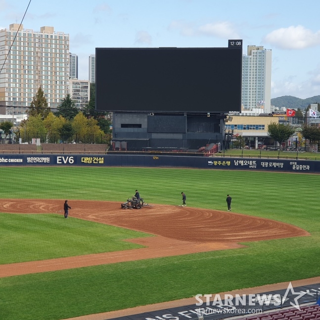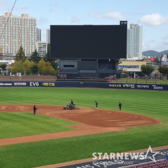하늘도 깨끗하다. 기상청에 따르면 챔피언스필드가 위치한 광주광역시 북구 지역은 미세먼지(13㎍/m³) 좋음 수준을 기록했다. 다만 기온이 1차전이 재개될 오후 4시 무렵엔 17℃로 낮아 빠르게 몸을 푸는 것이 필요해 보인다.