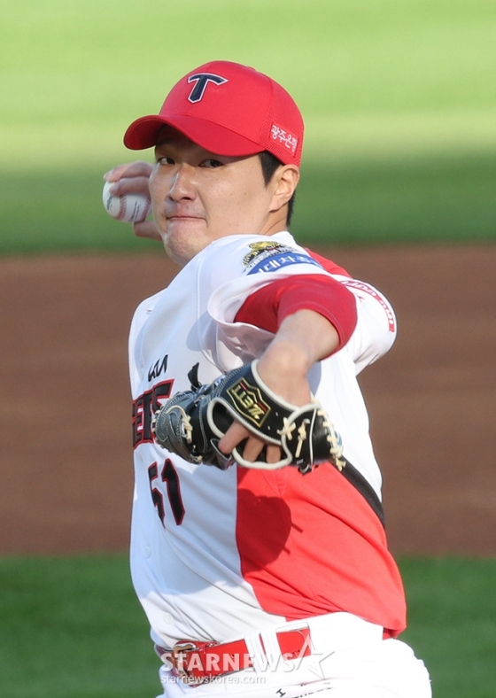 이범호 감독이 가장 신뢰한 투수는 전상현이었다. 전상현은 번트를 시도한 김영웅을 2구 만에 땅볼로 잡고 박병호를 헛스윙 삼진으로 돌려세웠다. 윤정빈에게 볼넷을 주긴 했으나, 이재현을 투수 땅볼로 처리하면서 실점 없이 이닝을 마무리했다.