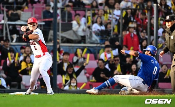 이후 소크라테스에게 1타점 적시타를 내주고 물러났지만 PO에서 완벽투를 펼친 김윤수마저 김도영에게 추가 1타점 안타를 맞으며 순식간에 1-4로 흐름을 완전히 내줬다.