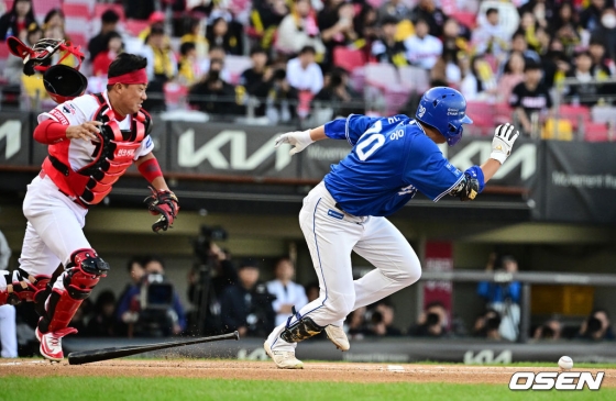 6회초 무사 1,2루에서 타석에 오른 김영웅은 번트 실패로 3루에서 2루 주자를 잡아내고 르윈 디아즈가 아웃됐다. 올 시즌 28홈런을 때려낸 삼성의 히트상품이었지만 희생번트는 단 하나에 불과했던 김영웅이었기에 더욱 아쉬움이 남는 선택이었다.