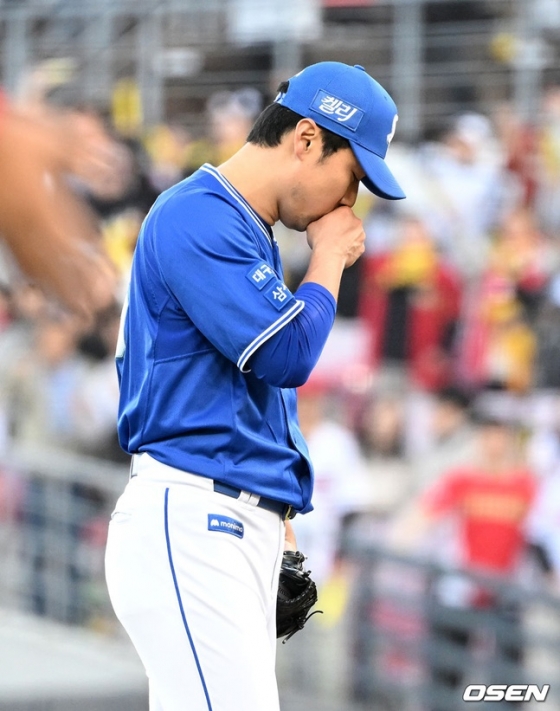 그러나 빗줄기가 굵어지며 우려가 현실이 됐다. 사상 초유의 포스트시즌 서스펜디드 게임이 선언됐다. 무사 1,2루, 승리 확률이 73.1%까지 치솟은 상황에서 경기는 재개될 예정이었지만 원태인 없이 4이닝을 버텨야 한다는 점이 우려스러웠다.