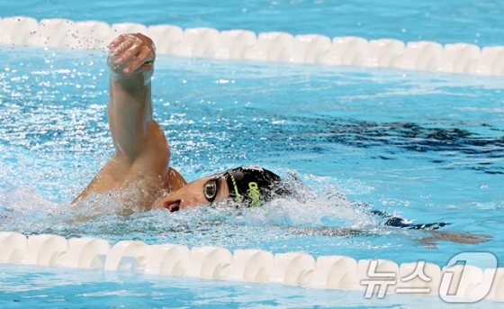 지유찬은 24일 인천 문학박태환수영장에서 열린 2024 월드아쿠아틱스 경영 월드컵 인천 2차 대회 남자 자유형 50m 예선에서 20초 95로 전체 1위를 찍었다.