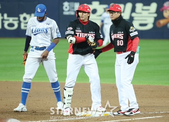 스포츠야구[포토] 나성범 '타격감 올라왔어'발행 : 2024.10.25 ・ 19:47대구=김진경 대기자'2024 KBO 포스트시즌 한국시리즈 3차전' 삼성-KIA전이 25일 대구 삼성라이온즈파크에서 열렸다.KIA 나성범이 5회초 무사에서 우전 안타를 날리고 출루한 후 이현곤 코치의 환영을 받고 있다.<저작권자 © 스타뉴스, 무단전재 및 재배포 금지>한국시리즈이범호김도영김영웅네일원태인추천 기사김진경 대기자기자홈좋아요 스포츠-야구의 인기 급상승 뉴스스포츠-야구의 최신 뉴스