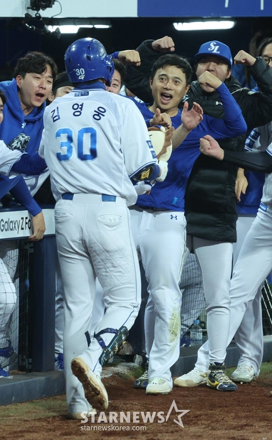 스포츠야구[포토] 김영웅-김헌곤 '오늘 사자는 다르다'발행 : 2024.10.25 ・ 20:28대구=김진경 대기자'2024 KBO 포스트시즌 한국시리즈 3차전' 삼성-KIA전이 25일 대구 삼성라이온즈파크에서 열렸다.삼성 김영웅이 5회초 2사에서 우중월 1점 홈런을 날리고 홈인한 후 동료들의 환영을 받고 있다.<저작권자 © 스타뉴스, 무단전재 및 재배포 금지>한국시리즈이범호김도영김영웅네일원태인추천 기사김진경 대기자기자홈좋아요 스포츠-야구의 인기 급상승 뉴스스포츠-야구의 최신 뉴스