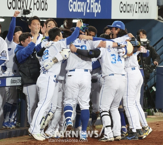 스포츠야구[포토] 박병호 '깨어났다 아이가'발행 : 2024.10.25 ・ 21:11대구=김진경 대기자'2024 KBO 포스트시즌 한국시리즈 3차전' 삼성-KIA전이 25일 대구 삼성라이온즈파크에서 열렸다.삼성 박병호가 7회초 무사에서 김헌곤에 이어 우중월 1점 홈런(백투백)을 날리고 홈인한 후 동료들의 환영을 받고 있다.<저작권자 © 스타뉴스, 무단전재 및 재배포 금지>한국시리즈이범호김도영김영웅네일원태인추천 기사김진경 대기자기자홈좋아요 스포츠-야구의 인기 급상승 뉴스스포츠-야구의 최신 뉴스