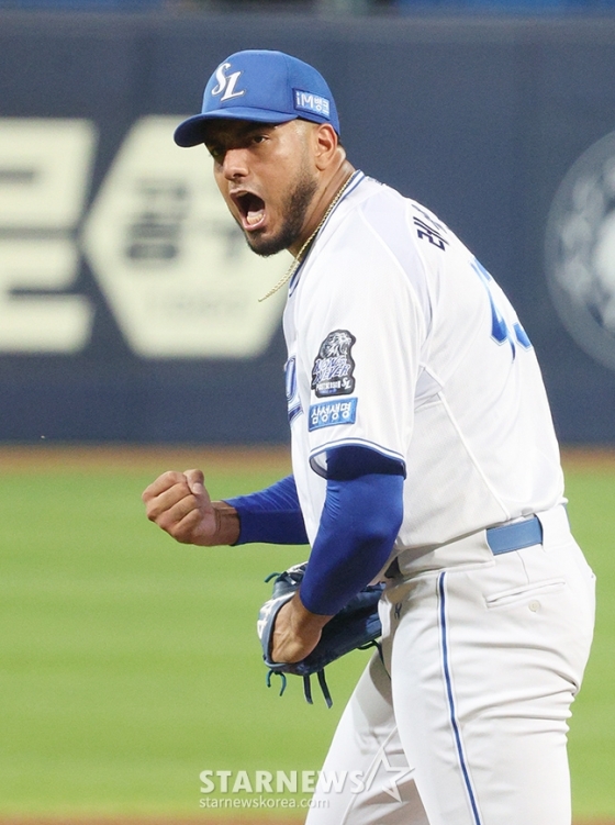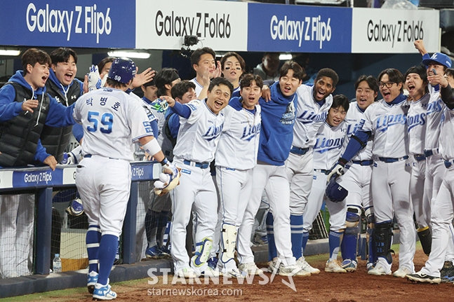 포스트시즌에서도 그 기세는 이어졌다. LG 트윈스와 플레이오프(PO·5전 3선승제)에서 홈 2경기에서 홈런 8개를 폭발시켰고, 한국시리즈 진출을 확정한 것조차 4차전 강민호의 솔로포 한 방이었다. 2차전 패배 후 삼성 박진만 감독이 괜히 "우리가 승리하는 패턴을 보면 장타가 나와야 한다. (광주에서의 1·2차전에서는) 결정적인 순간 타점이 안 나왔고 단타가 나왔다"고 패인을 짚은 것이 아니다.