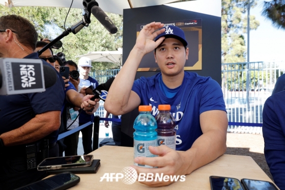 결전을 하루 앞둔 25일 다저스타디움에서 LA 다저스의 공식 기자회견이 열렸다. 이날 화제의 중심은 역시 메이저리그 진출 후 처음으로 월드시리즈 무대를 밟은 오타니 쇼헤이였다.