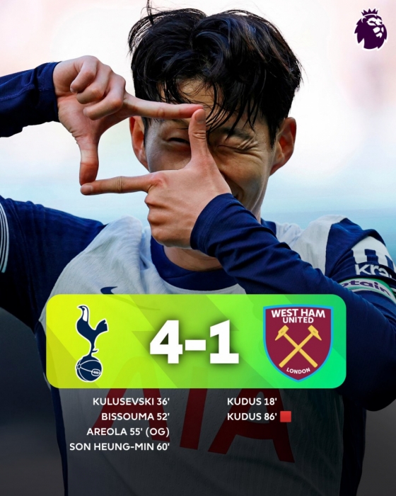 영국 매체 '이브닝 스탠다드'는 25일(한국시간) "토트넘 주장(손흥민)은 크리스탈 팰리스전에 결장할 것이다. 앙제 포스테코글루(59) 토트넘 감독이 직접 말했다"라며 "손흥민의 컨디션이 좋지 않다. 토트넘은 맨체스터 시티와 곧 잉글랜드리그컵(카라바오컵) 16강도 치른다"고 보도했다.