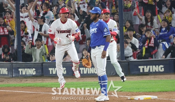 스포츠야구[포토] 역전타 날리고 방방 뜨는 김태군발행 : 2024.10.28 ・ 21:14광주=김진경 대기자'2024 KBO 포스트시즌 한국시리즈 5차전' KIA-삼성전이 28일 광주-기아챔피언스필드에서 열렸다.KIA 김태군이 6회말 1사 1,3루에서 역전 1타점 내야안타를 날린 후 환호하고 있다.<저작권자 © 스타뉴스, 무단전재 및 재배포 금지>한국시리즈이범호김도영김영웅네일원태인추천 기사김진경 대기자기자홈좋아요 스포츠-야구의 인기 급상승 뉴스스포츠-야구의 최신 뉴스