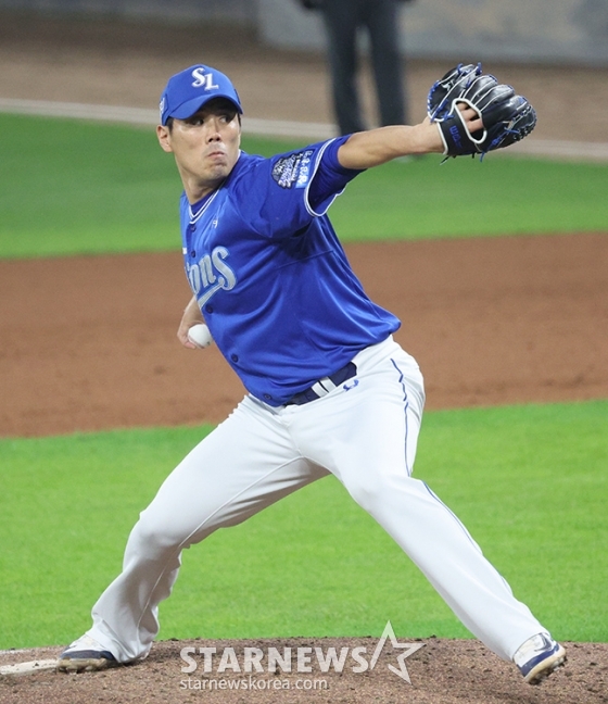 삼성 김재윤이 역투하고 있다.