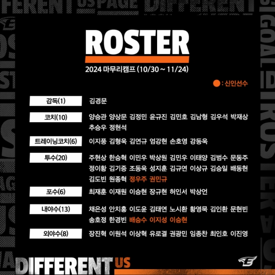 올 시즌 한화이글스 유니폼을 새로 입게 된 정우주, 권민규, 배승수, 이지성, 이승현 등 신인 5명도 캠프에 합류, 1군 코칭스태프 지도를 받게 됐다.