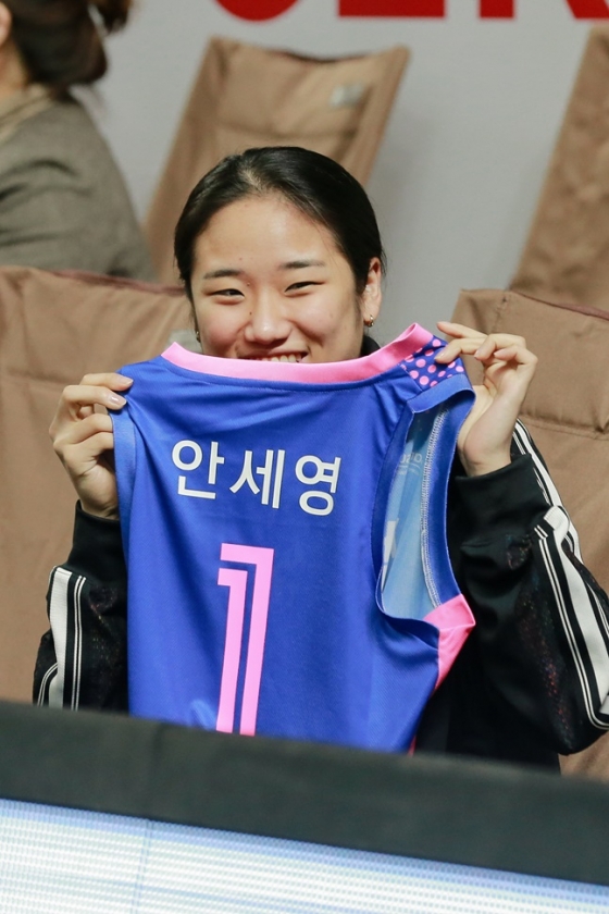 지난 시즌 삼성생명의 홈 개막전에 방문한 안세영. /사진=WKBL 제공