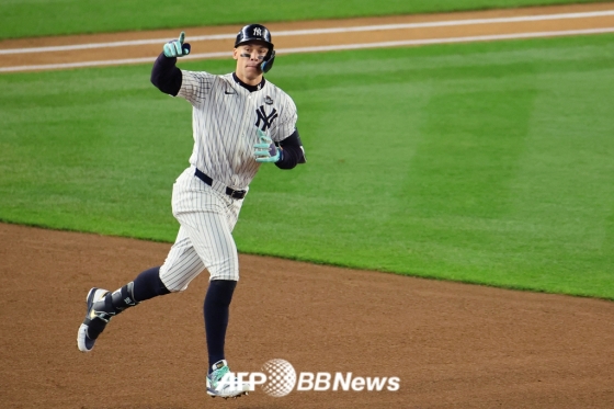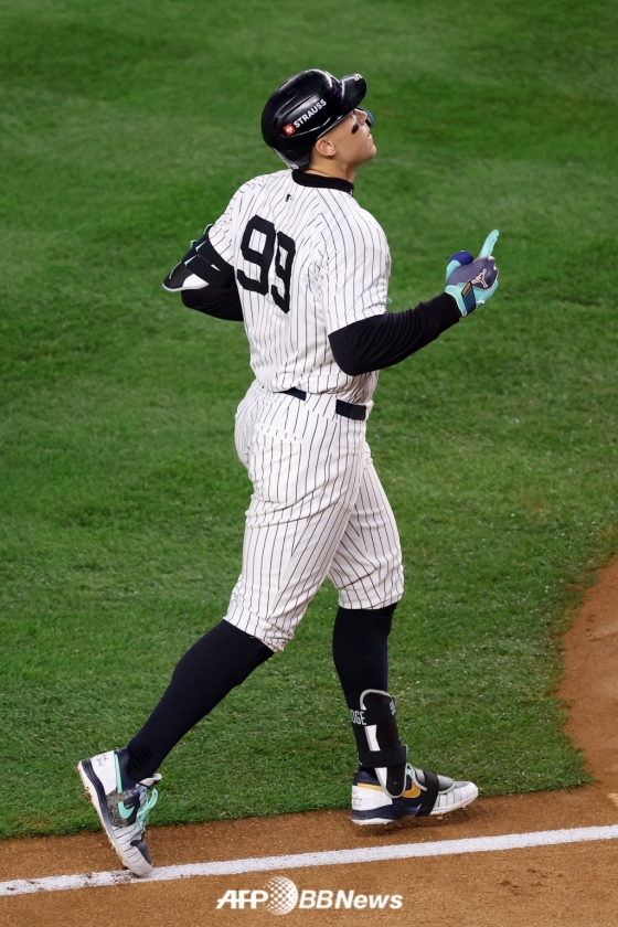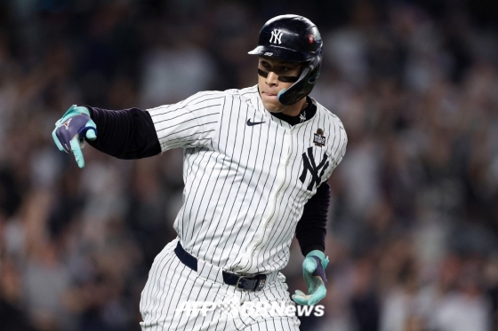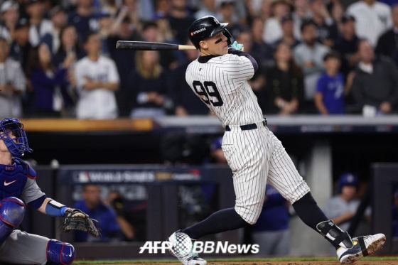 저지는 31일(한국 시각) 미국 뉴욕 브롱크스에 위치한 양키스타디움에서 열린 LA 다저스와 2024 미국 프로야구 메이저리그(MLB) 포스트시즌 월드시리즈 5차전에서 홈런포를 쏘아 올렸다.