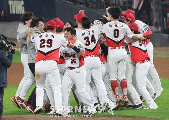 스포츠야구[포토] 최형우 '장하다 무등산 호랑이'발행 : 2024.10.31 ・ 14:01광주=김진경 대기자'2024 KBO 포스트시즌 한국시리즈 5차전' KIA-삼성전이 28일 광주-기아챔피언스필드에서 열렸다.KIA가 5차전 삼성에 승리히며 4승 1패로 헌국시리즈 우승을 차지했다.선수들이 마운드에 모여 기쁨을 나누고 있다.<저작권자 © 스타뉴스, 무단전재 및 재배포 금지>한국시리즈이범호김도영김영웅네일원태인추천 기사김진경 대기자기자홈좋아요 스포츠-야구의 인기 급상승 뉴스스포츠-야구의 최신 뉴스