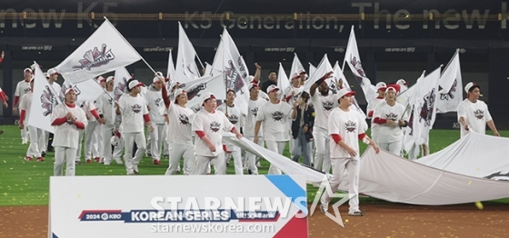 스포츠야구[포토] 구단기 휘날리는 무등산 호랑이들발행 : 2024.10.31 ・ 14:10광주=김진경 대기자'2024 KBO 포스트시즌 한국시리즈 5차전' KIA-삼성전이 28일 광주-기아챔피언스필드에서 열렸다.KIA가 5차전 삼성에 승리히며 4승 1패로 헌국시리즈 우승을 차지했다.선수단이 구단기를 흔들며 환호하는 팬들과 기쁨을 나누고 있다.<저작권자 © 스타뉴스, 무단전재 및 재배포 금지>한국시리즈이범호김도영김영웅네일원태인추천 기사김진경 대기자기자홈좋아요 스포츠-야구의 인기 급상승 뉴스스포츠-야구의 최신 뉴스