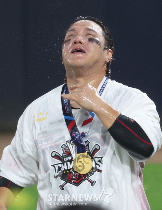 스포츠야구[포토] 김선빈 '샴페인에 젖어 눈물에 젖어'발행 : 2024.10.31 ・ 14:12광주=김진경 대기자'2024 KBO 포스트시즌 한국시리즈 5차전' KIA-삼성전이 28일 광주-기아챔피언스필드에서 열렸다.KIA가 5차전 삼성에 승리히며 4승 1패로 헌국시리즈 우승을 차지했다.한국시리즈 MVP에 오른 김선빈이 메달을 목에 걸고 감격해하고 있다.<저작권자 © 스타뉴스, 무단전재 및 재배포 금지>한국시리즈이범호김도영김영웅네일원태인추천 기사김진경 대기자기자홈좋아요 스포츠-야구의 인기 급상승 뉴스스포츠-야구의 최신 뉴스