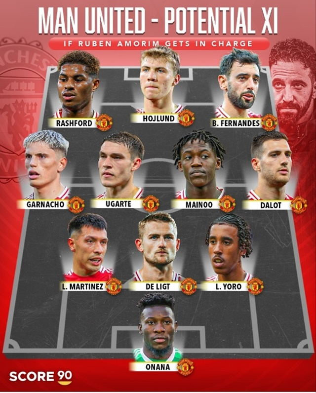 축구전문 스코어90은 1일(한국시간) 아모림 감독이 이끄는 맨유의 베스트11을 선정해 발표했다. 매체는 아모림이 전 소속팀 스포르팅 리스본(포르투갈)에서 썼던 3-4-3 포메이션을 토대로 명단을 꾸렸다.