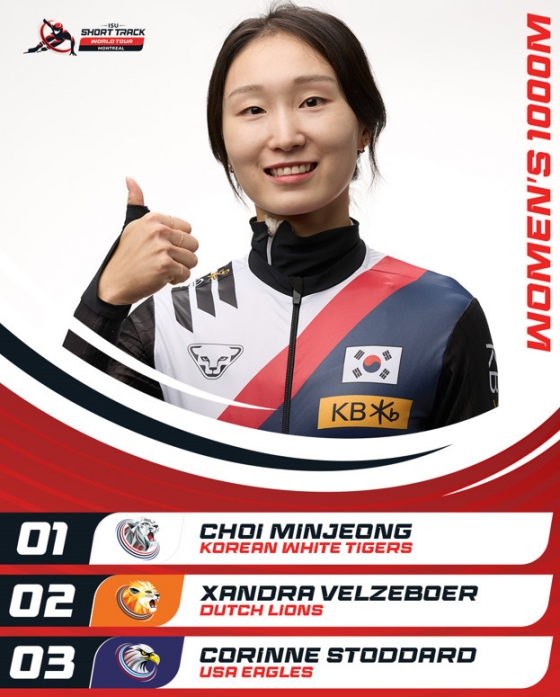 최민정은 3일(한국시간) 캐나다 퀘벡주 몬트리올 모리스 리처드 아레나에서 열린 '2024~2025 국제빙상경기연맹(ISU) 쇼트트랙 월드투어' 2차 대회 여자 1000m 결승에서 1분30초496로 우승했다. 2위는 산드라 펠제부르(네덜란드), 3위는 커린 스토더드(미국)다.
