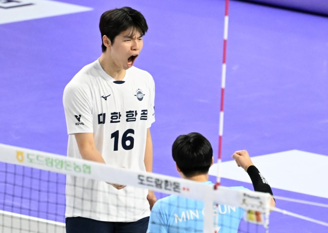 이날 대한항공은 김민재(미들블로커)-유광우(세터)-정한용(아웃사이드히터)-조재영(미들블로커)-김준호(아포짓스파이커)-정지석(아웃사이드히터)-김민재(미들블로커)-송민근(리베로)으로 선발 라인업을 구성했다.
