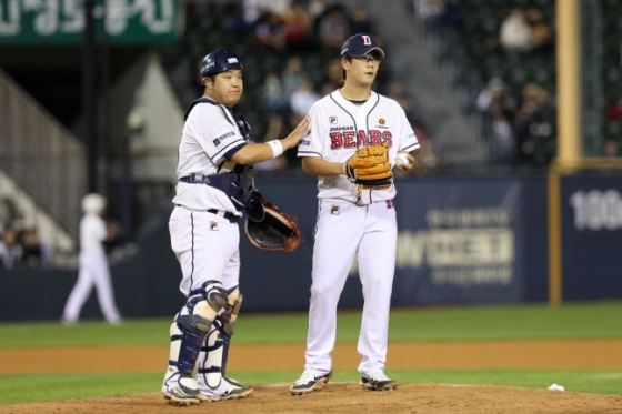 6일 경기도 이천 베어스파크에서 열린 2024 두산 베어스 마무리 캠프 현장에서 만난 김기연은 "아직 생각이 많이 난다. 그날 공이 안 좋았던 게 아닌데 그런 결과가 나오니까 더 아쉬웠다"며 "(곽)빈이에겐 미안하게 생각하고 있다. 투수 공이 좋았는데 맞은 거는 그건 포수 잘못이라 생각한다"고 말했다.