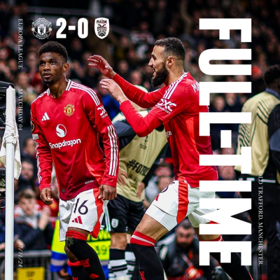 맨유는 8일(한국시간) 영국 맨체스터의 올드 트래포드에서 열린 2024~2025시즌 유럽축구연맹(UEFA) 유로파리그(UEL) 4라운드에서 PAOK(그리스)에 2-0으로 이겼다.