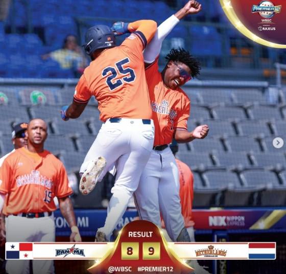 네덜란드 야구 대표팀은 10일(한국 시각) 멕시코 할리스코주 과달라하라시 인근에 위치한 파나메리카노 베이스볼 스타디움에서 펼쳐진 파나마 야구 대표팀과 프리미어12 A조 개막전에서 연장 10회 승부치기 끝에 9-8로 승리했다.