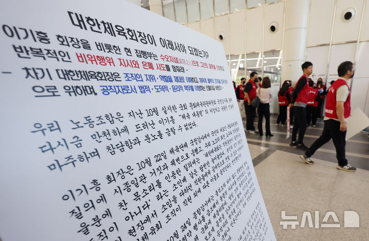 대한체육회노조는 전체회의가 개최되는 올림픽회관 13층 대회의실 앞에서 퇴진 요구 구호를 외쳤다. 뉴시스에 따르면 체육회 노조는 '정부도 국회도 무시하고 꼼수로 연임에 도전하는 이기흥 회장은 물러나라! 스포츠공정위원회는 공정과 상식의 가치에 입각해 안건을 심의하라'라는 플래카드를 들고 "체육인이 지켜본다. 사심 없이 공정하게 심의하라", "엄중하게 판단하라"고 거듭 외치기도 했다.